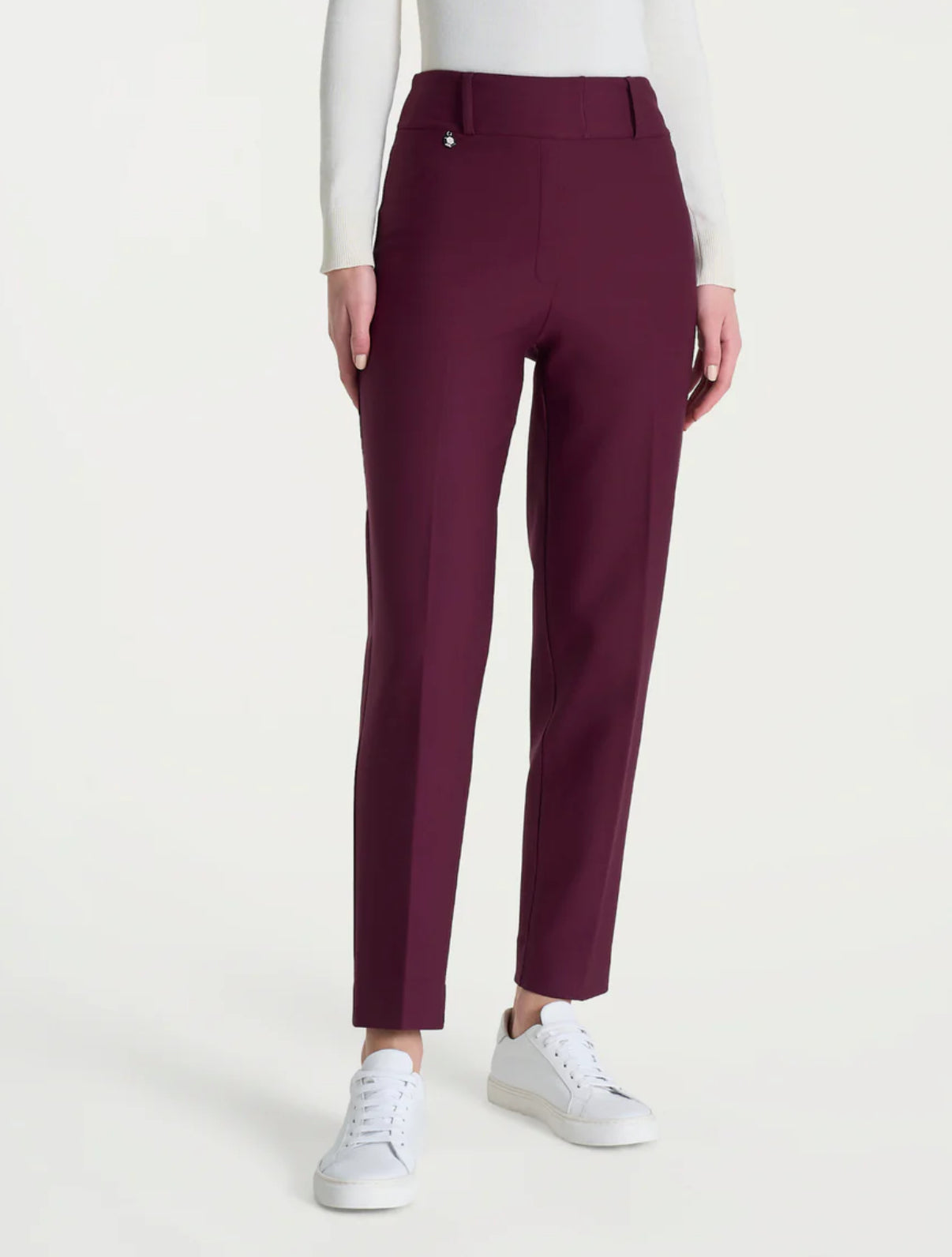 Pantalone a carota la gamba leggermente ampia si stringe verso la caviglia, lunghezza cropped alla caviglia.