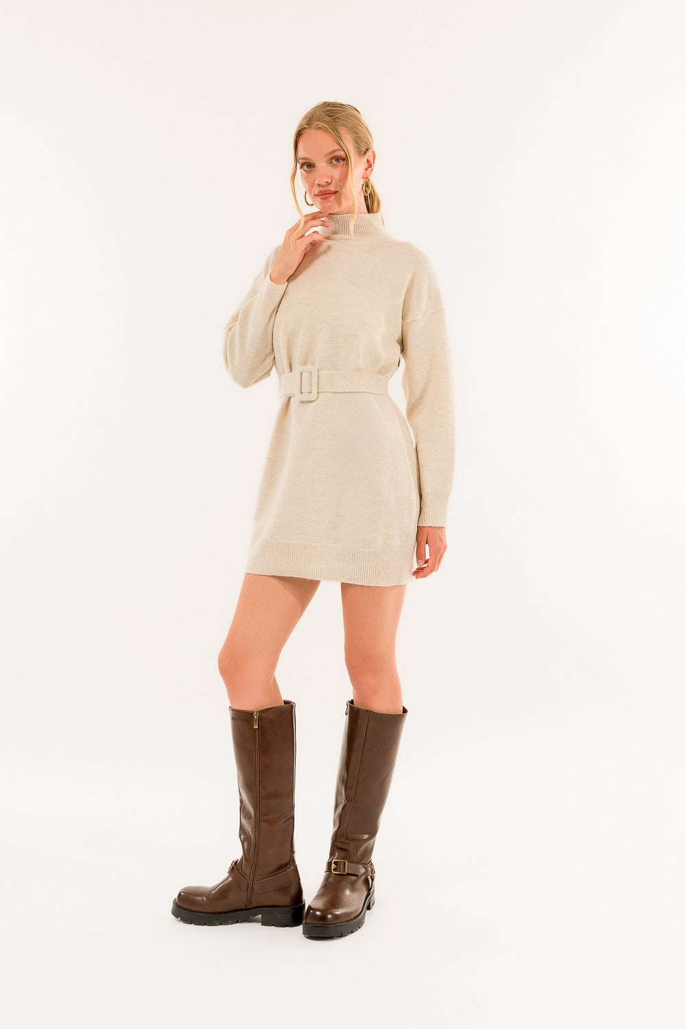 - Abito lupetto con cintura