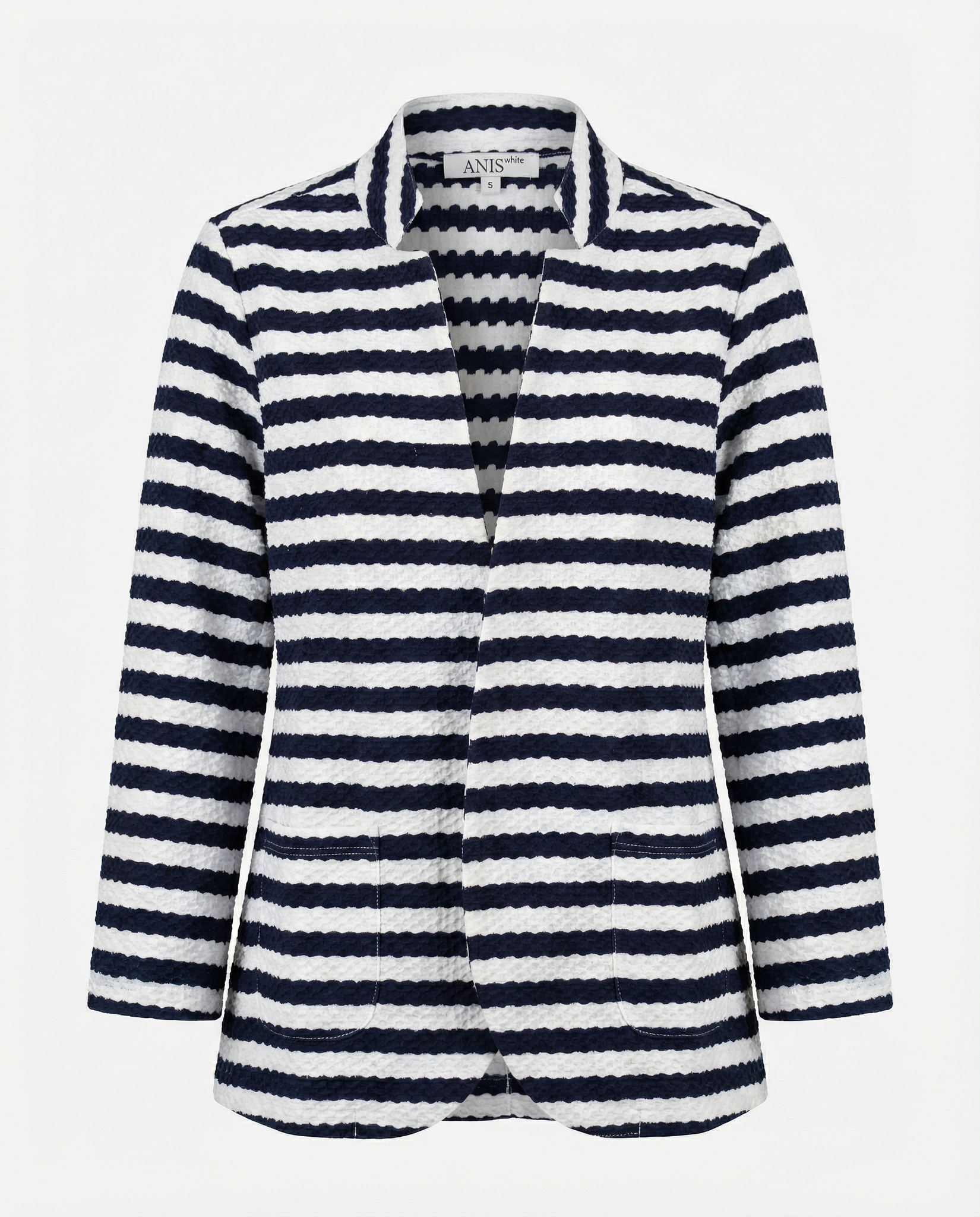 Blazer in jersey goffrato a righe – Navy/Avorio