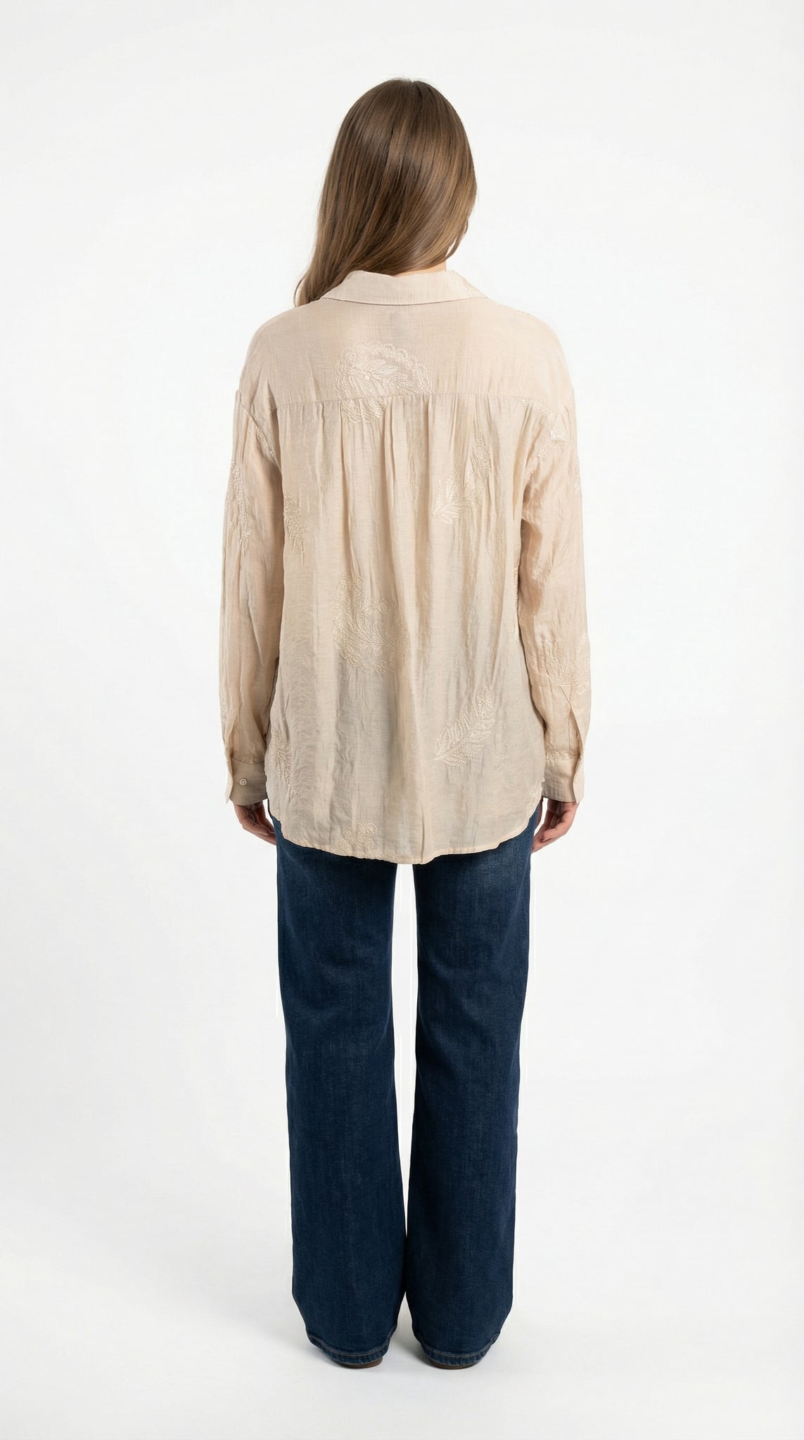 Camicia Beige chiaro con Ricami e Micropaillettes