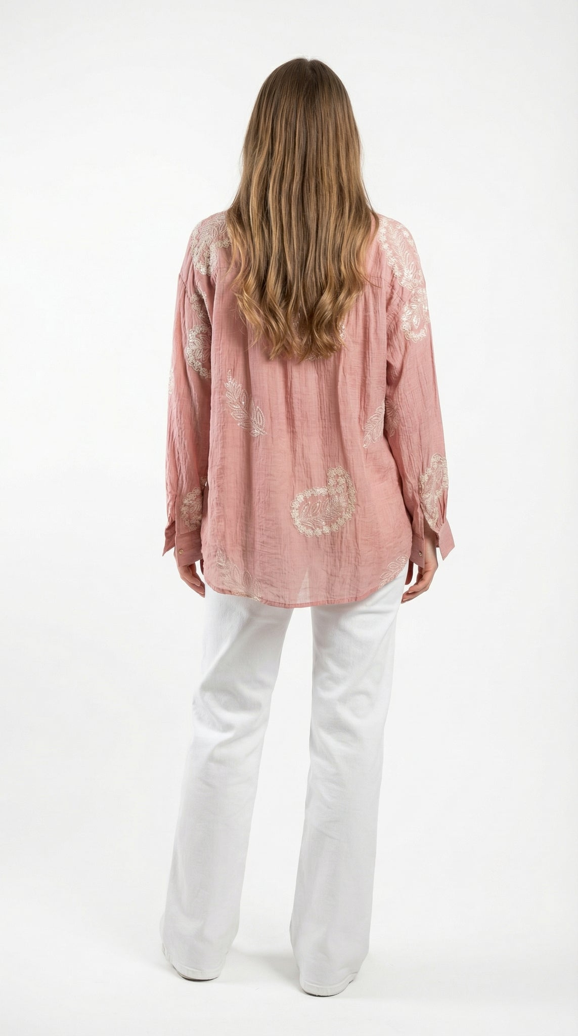 Camicia Rosa con Ricami e Micropaillettes