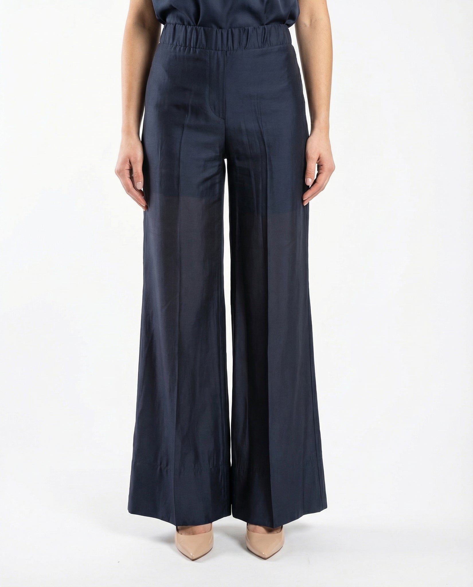 - Pantaloni palazzo a vita alta con elastico in vita