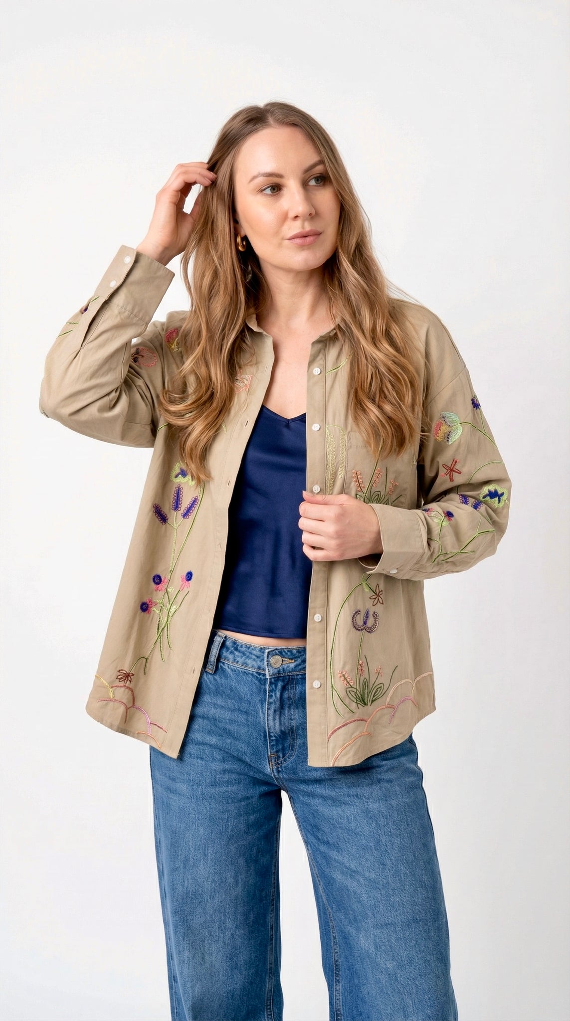 Giacca a Camicia con Ricami Floreali Multicolor
