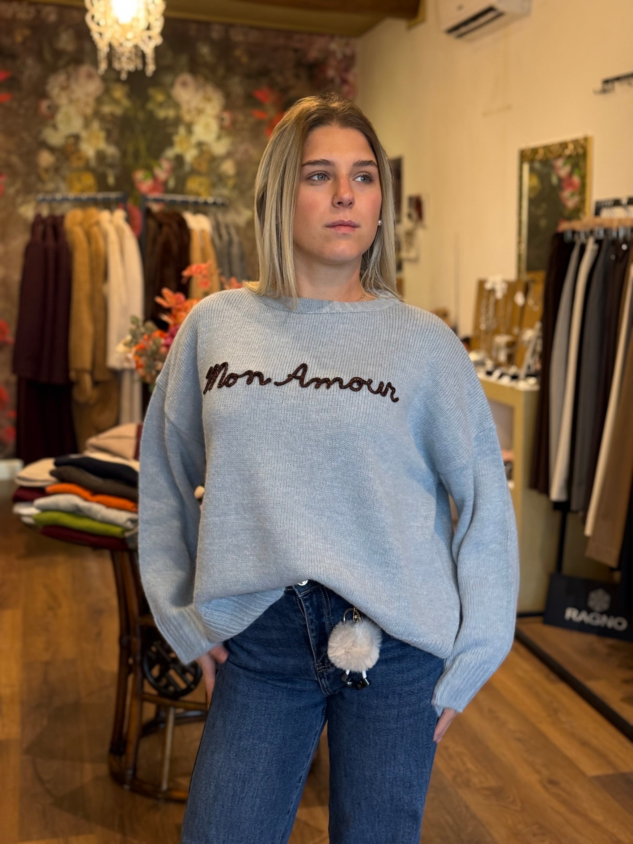 - Girocollo con scritta mon amour