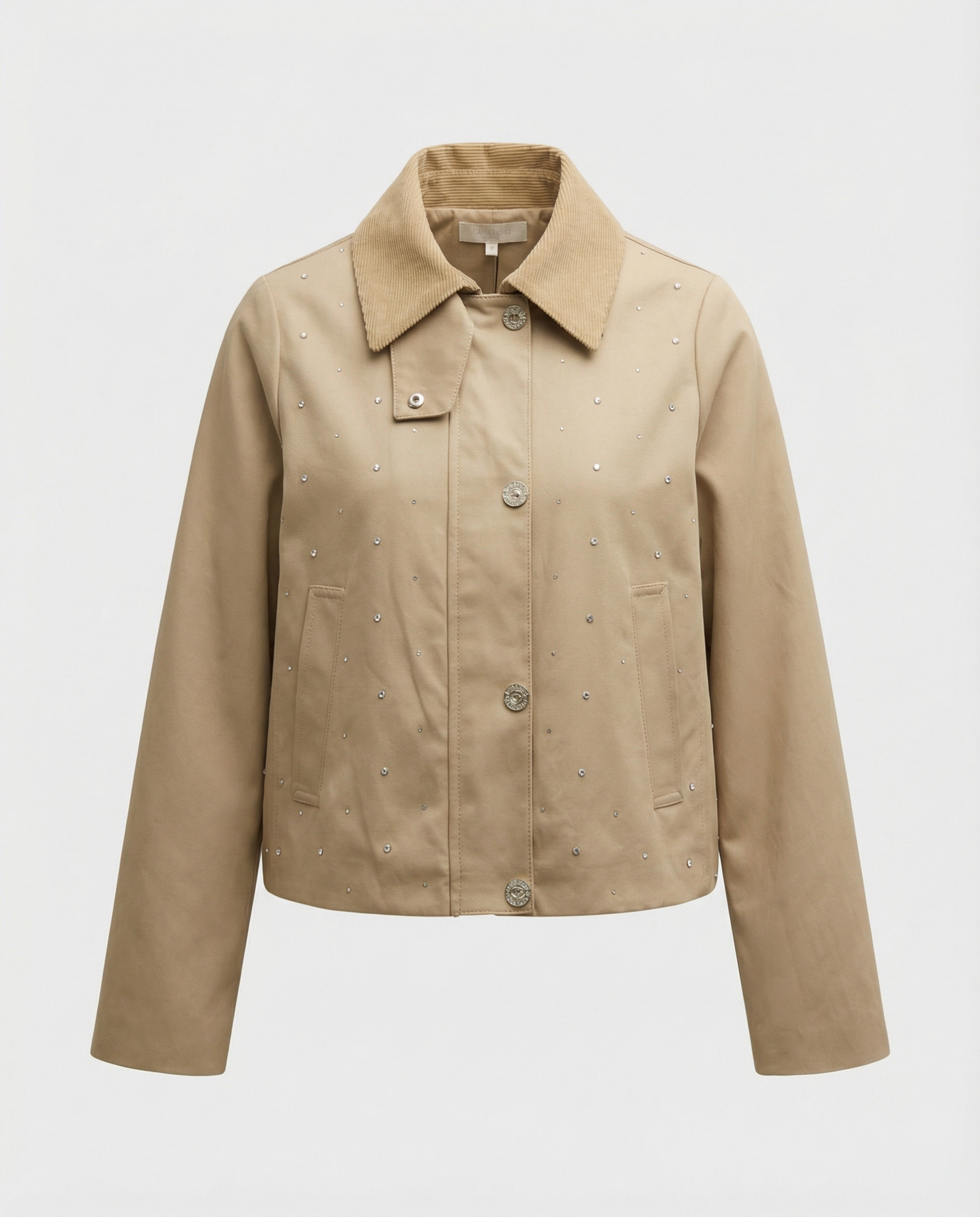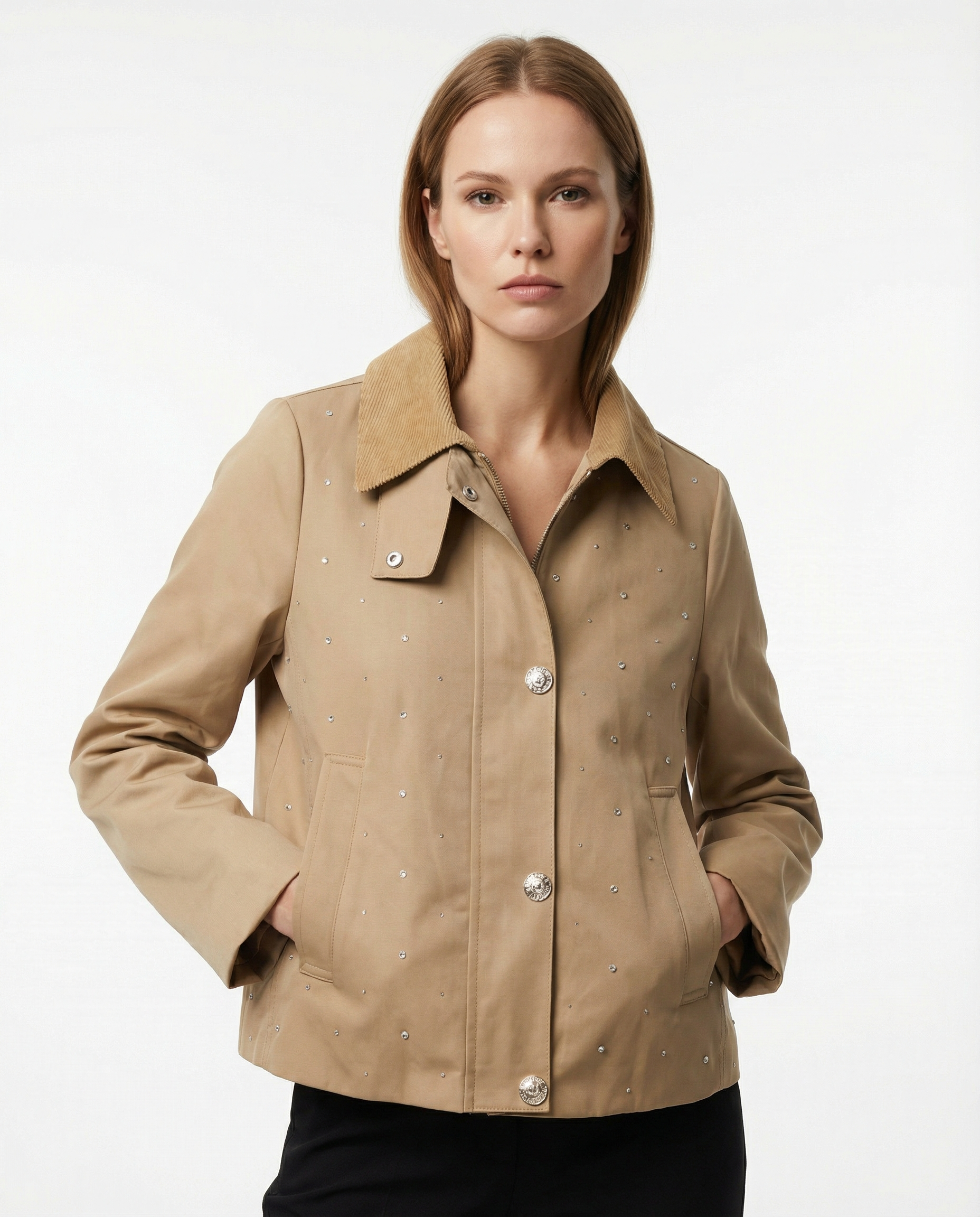 - Chiusura con zip, bottoni a vista + listino sul collo