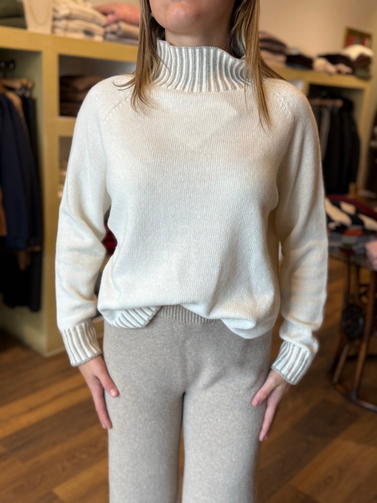 Maglia collo a cratere misto lana & cashmere
