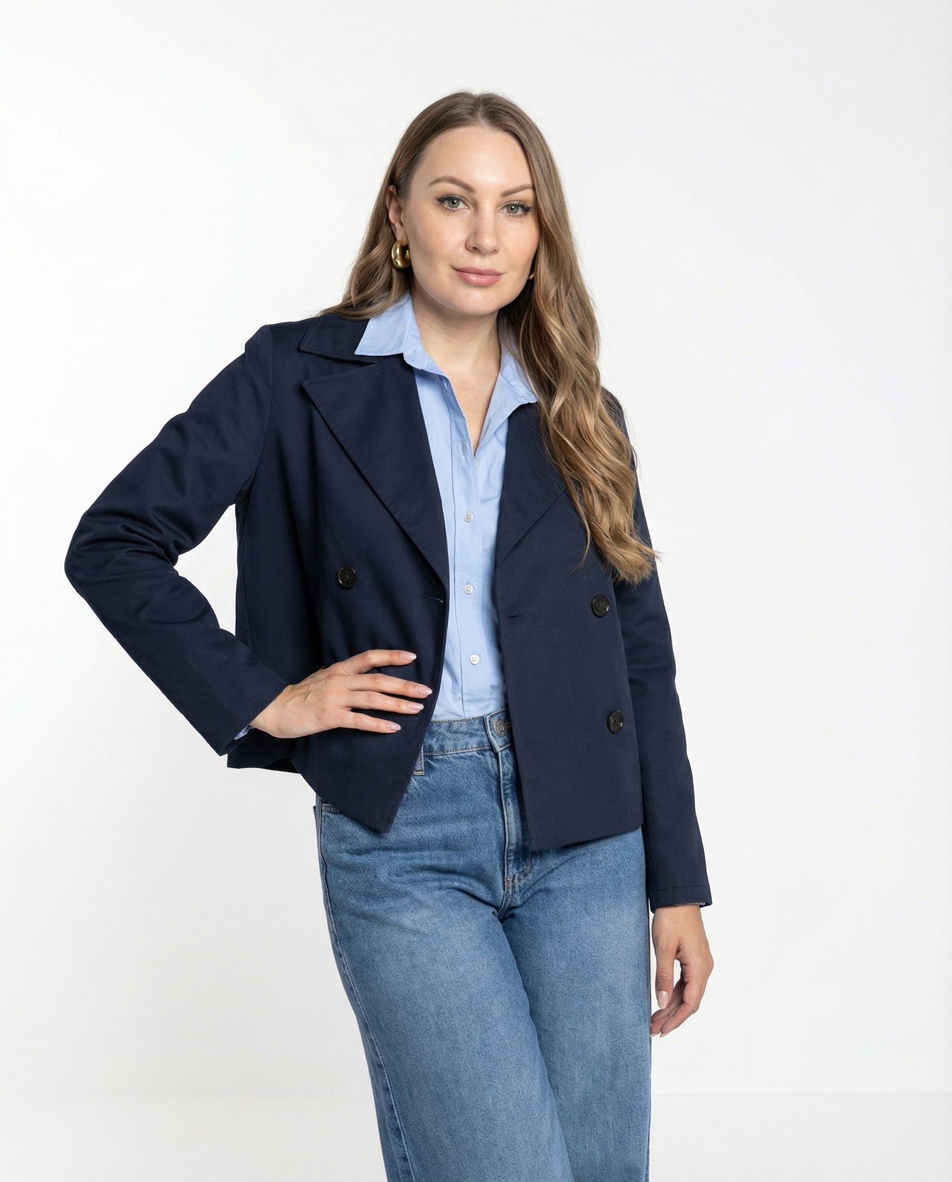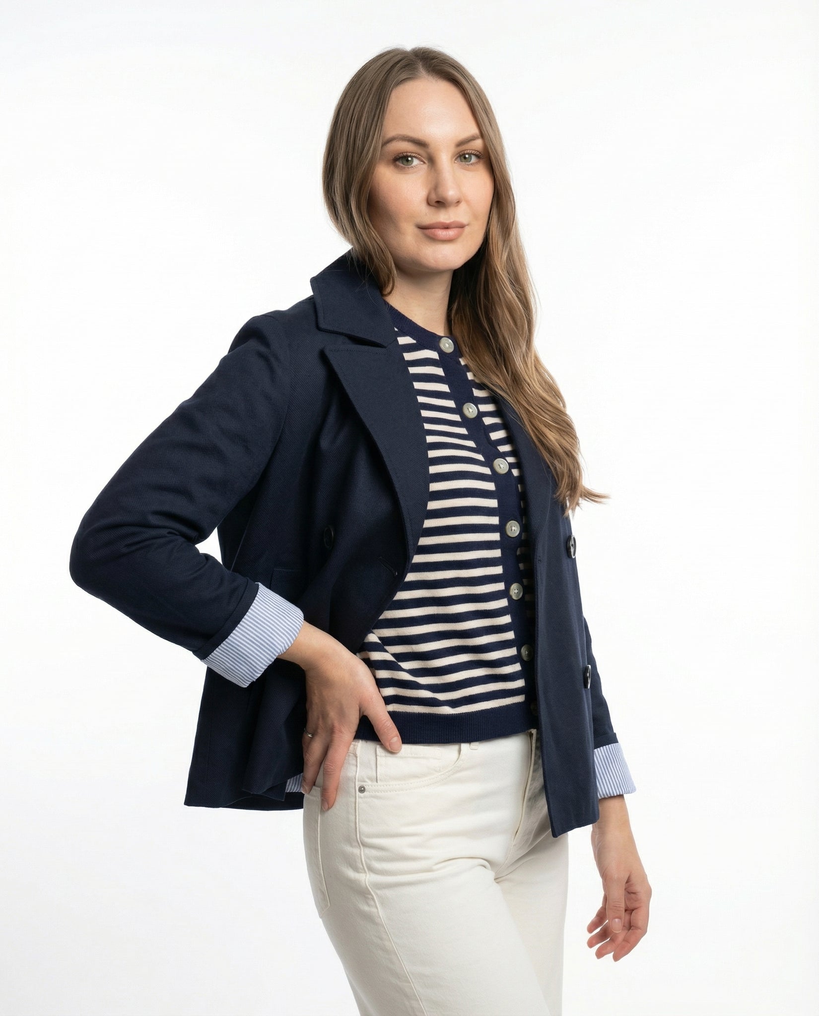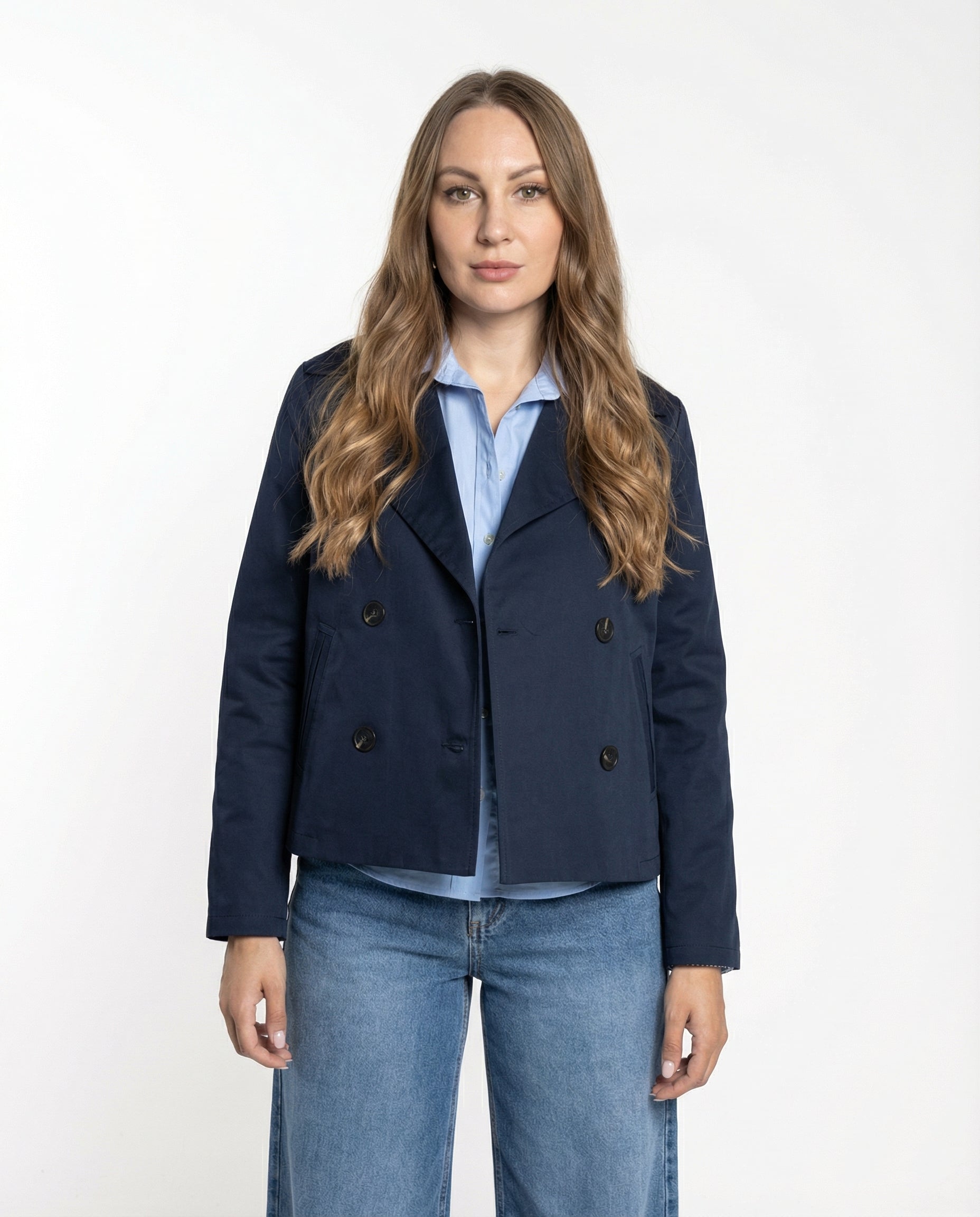 Trench Corto Doppiopetto Blu notte con Fodera a Righe